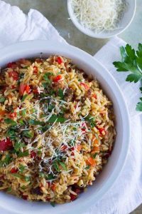 PASTA RECIPE: ORZO PASTA WITH SWEET ITALIAN SAUSAGE AND VEG